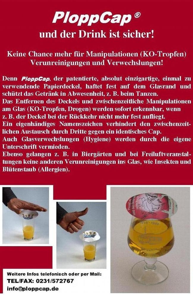 WELTWEIT WÄCHST DIE GEFAHR BEI DISCO UND GASTSTÄTTENBESUCHEN ZUM OPFER KRIMINELLER MACHENSCHAFTEN DURCH SOGENANNTE K.O. TROPFEN ZU WERDEN. DIE HEIMLICHE VERABREICHUNG VON DROGEN IN GETRÄNKEN GREIFT ZUNEHMEND UM SICH.